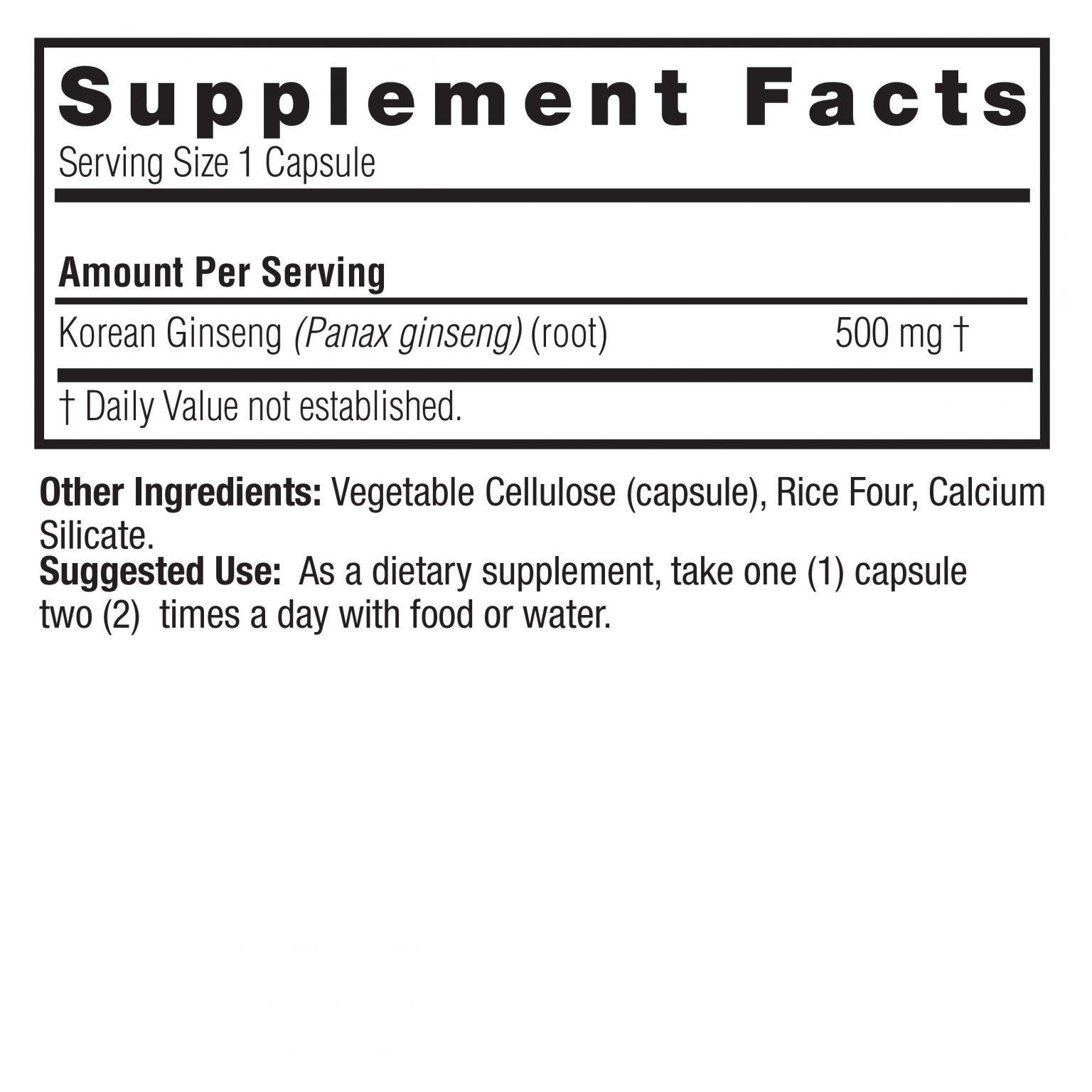 KOREAN GINSENG ROOT 50 V-CAPS *CA