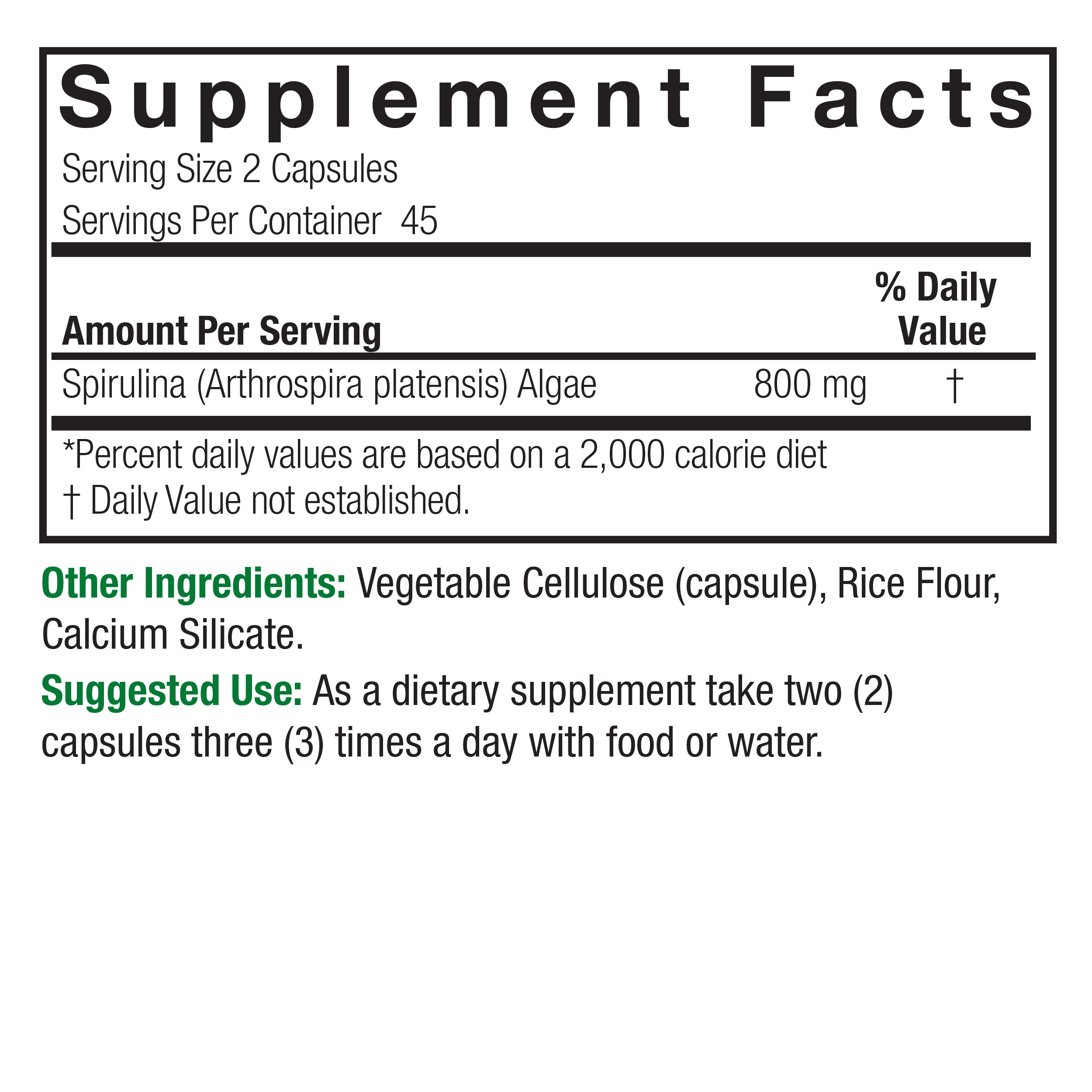 Spirulina — 90 kapsula | 800 mg har bir porsiyada