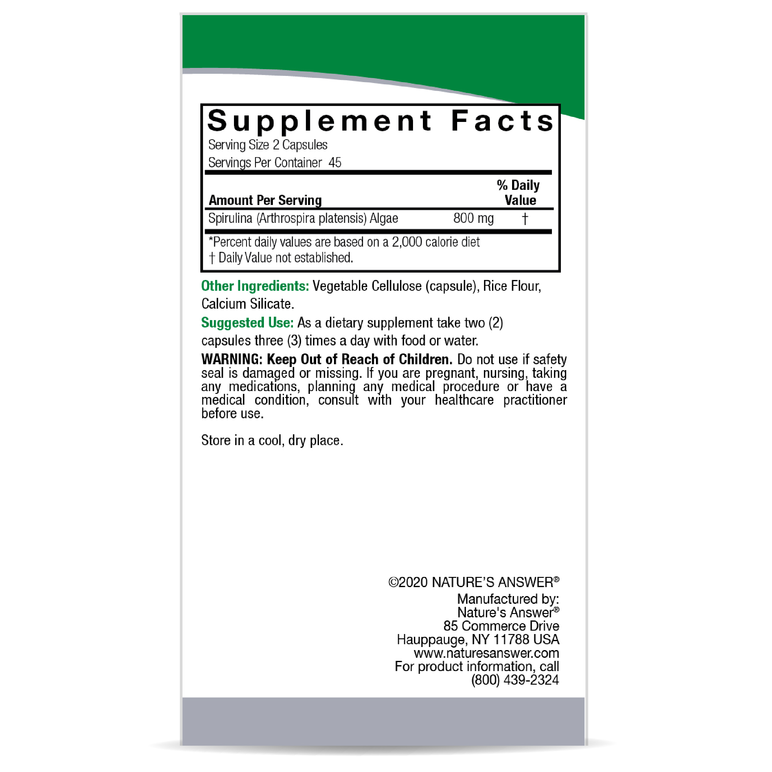 ✔️ Har bir porsiyada 800 mg sof spirulina